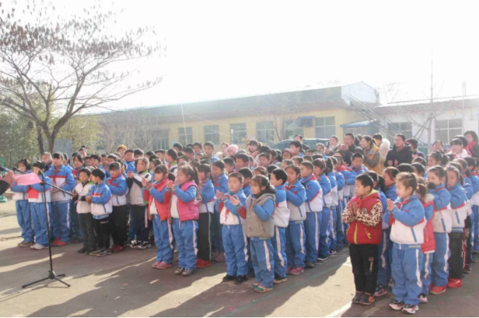 11時整,全校老師和同學(xué)們相聚在學(xué)校操場,愛心捐贈活動正式開始,出席本次捐贈活動的有:九三學(xué)社的劉彥濤秘書長、侯家華主委、泰安市化馬灣鎮(zhèn)教委彭主任與健源生物董事長王誠先生、總經(jīng)理助理兼辦公室主任王玲女士。學(xué)校張校長對九三學(xué)社與山東健源生物科技有限公司的捐贈表示感謝,感謝九三學(xué)社以及社會各界對學(xué)校教育的關(guān)注和支持,感謝在寒冬里送來溫暖和祝福。并告誡全校師生要懂得感恩,將這份愛心傳遞下去。