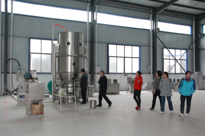 山東農(nóng)業(yè)大學(xué)劉建柱教授和藥學(xué)系老師們參觀了公司的科技研發(fā)中心、生產(chǎn)車間等,邢主任對廠區(qū)內(nèi)的環(huán)境設(shè)施和運作流程、工藝流程等進(jìn)行了講解。