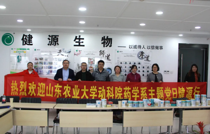 2021年4月22日,山東農(nóng)業(yè)大學(xué)劉建柱教授和山東農(nóng)業(yè)大學(xué)動科院藥學(xué)系老師們專程來到山東健源生物科技有限公司參觀交流,對我們的產(chǎn)品和技術(shù)進(jìn)行指導(dǎo),山東健源生物王誠王總、外宣部邢燭主任熱情接待并陪同參觀公司生產(chǎn)車間、科技研發(fā)中心等。