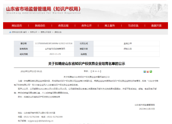 為進一步完善山東省優(yōu)勢企業(yè)培育體系,形成國家知識產(chǎn)權(quán)優(yōu)勢示范企業(yè)梯次培育隊伍。根據(jù)山東省市場監(jiān)督管理局(知識產(chǎn)權(quán)局)發(fā)布的《關(guān)于擬確定山東省知識產(chǎn)權(quán)優(yōu)勢企業(yè)培育名單的公示》,山東健源生物科技有限公司列入山東省知識產(chǎn)權(quán)優(yōu)勢企業(yè)培育名單。