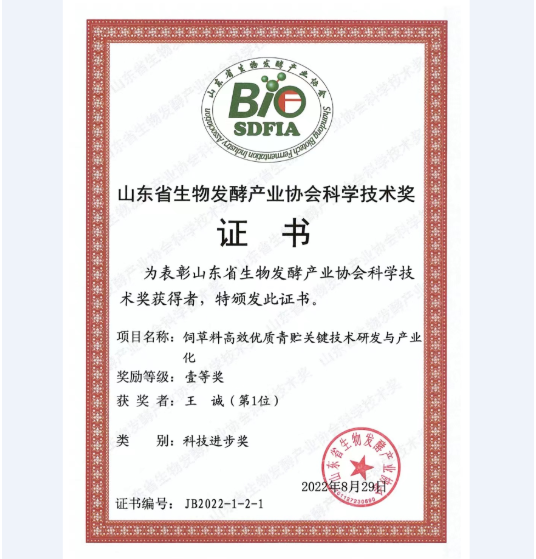 根據(jù)《國務(wù)院辦公廳關(guān)于完善科技成果評(píng)價(jià)機(jī)制的指導(dǎo)意見》(國辦發(fā)(2021)26 號(hào))和《山東省科技廳關(guān)于進(jìn)一步鼓勵(lì)和規(guī)范山東省社會(huì)力量獎(jiǎng)設(shè)立科學(xué)技術(shù)獎(jiǎng)的指導(dǎo)意見》(魯科字[2018]129號(hào))精神,按照《山東省生物發(fā)酵產(chǎn)業(yè)協(xié)會(huì)科學(xué)技術(shù)獎(jiǎng)獎(jiǎng)勵(lì)章程》相關(guān)規(guī)定,開展了 2022 年度山東省生物發(fā)酵產(chǎn)業(yè)協(xié)會(huì)科學(xué)技術(shù)獎(jiǎng)的申報(bào)、評(píng)審工作,經(jīng)山東省生物發(fā)酵產(chǎn)業(yè)協(xié)會(huì)科學(xué)技術(shù)獎(jiǎng)勵(lì)委員會(huì)評(píng)審和審核,山東省生物發(fā)酵產(chǎn)業(yè)協(xié)會(huì)批準(zhǔn),授予2項(xiàng)成果為科技進(jìn)步獎(jiǎng)一等獎(jiǎng),4項(xiàng)成果為科技進(jìn)步獎(jiǎng)二等獎(jiǎng),5項(xiàng)成果為科技進(jìn)步獎(jiǎng)三等獎(jiǎng)。山東健源生物科技有限公司《飼草料高效優(yōu)質(zhì)青貯關(guān)鍵技術(shù)研發(fā)與產(chǎn)業(yè)化》項(xiàng)目榮獲山東省生物發(fā)酵產(chǎn)業(yè)協(xié)會(huì)科學(xué)技術(shù)獎(jiǎng)科技進(jìn)步獎(jiǎng)一等獎(jiǎng)。