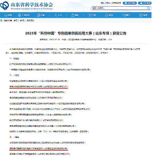 附《2023年“科創(chuàng)中國”專利信息創(chuàng)新應(yīng)用大賽(山東專場)獲獎公告》