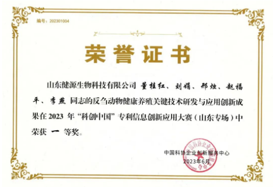 山東健源生物科技有限公司《反芻動物健康養(yǎng)殖關(guān)鍵技術(shù)研發(fā)與應(yīng)用》項目榮獲2023年科創(chuàng)中國專利信息創(chuàng)新應(yīng)用大賽(山東專場)一等獎