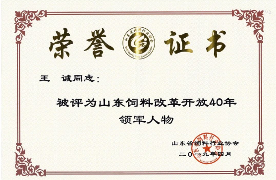 山東健源生物董事長(zhǎng)王誠(chéng)榮獲山東飼料改革開(kāi)放40年領(lǐng)軍人物