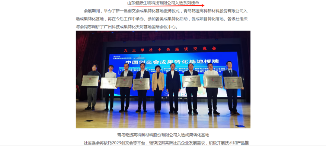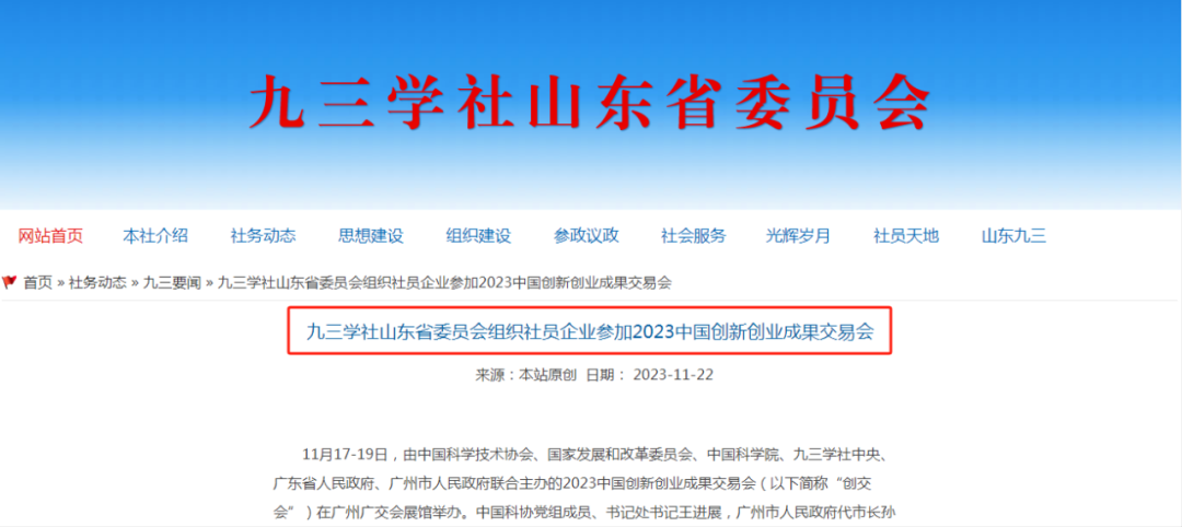 山東健源生物科技有限公司在此次創(chuàng)交會(huì)上的優(yōu)異表現(xiàn)也獲得了九三學(xué)社各級委員會(huì)的關(guān)注和報(bào)道。