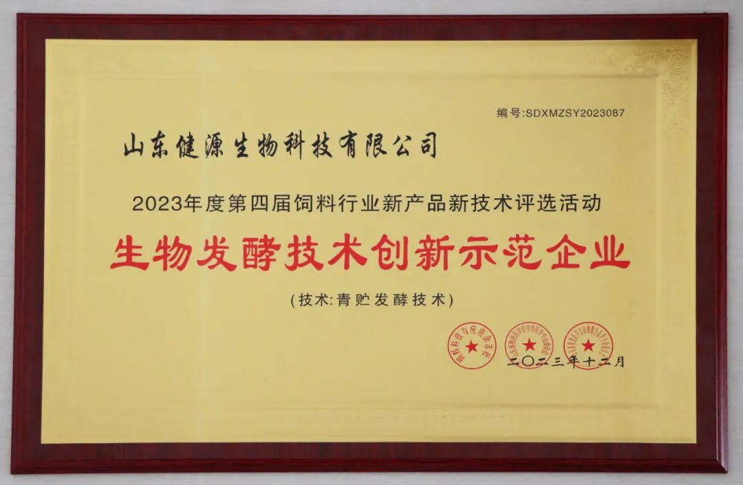 12月12日,由山東畜牧醫(yī)學會主辦的第四屆青鳥論壇暨2023年度飼料行業(yè)新產(chǎn)品新技術研討發(fā)布會在濟南舉行。山東健源生物科技有限公司獲評生物發(fā)酵技術創(chuàng)新示范企業(yè)。