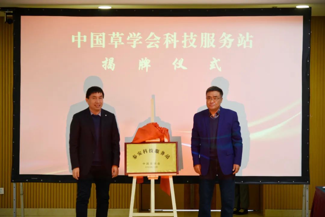 會(huì)上,李建蔚代表泰安市政府致辭,董磊介紹了泰安市創(chuàng)新驅(qū)動(dòng)示范市建設(shè)情況。山東省科協(xié)學(xué)會(huì)部部長(zhǎng)、一級(jí)調(diào)研員葛玉芝與王堃教授共同為中國(guó)草學(xué)會(huì)泰安科技服務(wù)站揭牌。