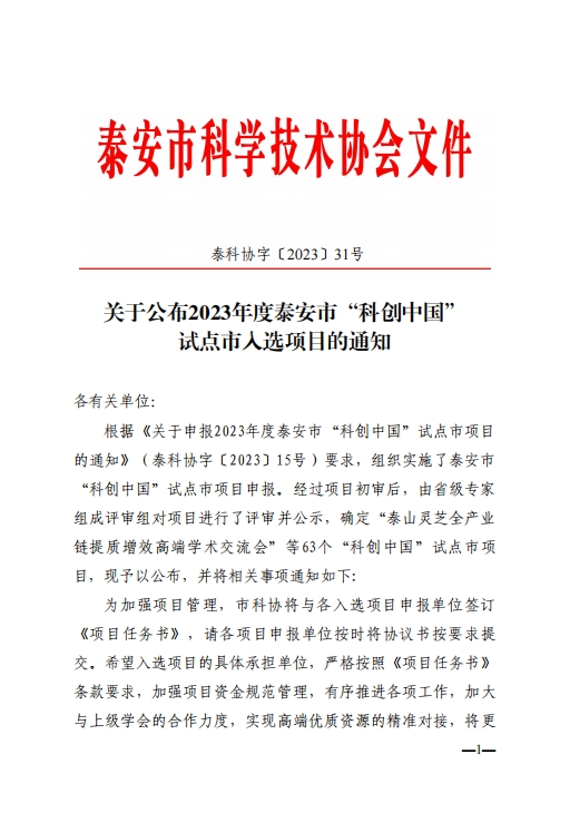 附:2023年泰安市“科創(chuàng)中國(guó)”試點(diǎn)市項(xiàng)目擬入圍名單