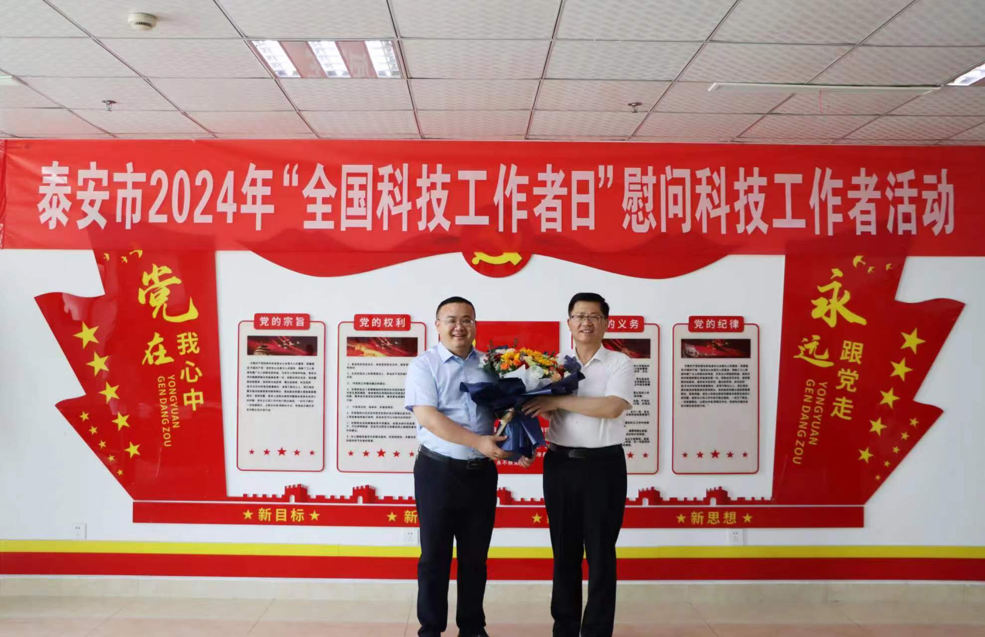 5月24日上午,泰安市科協(xié)黨組成員、副主席范寶品帶隊到山東健源生物科技有限公司慰問2023年度“齊魯最美工程師”獲得者王誠董事長,贈送鮮花,并致以節(jié)日的問候和祝福。