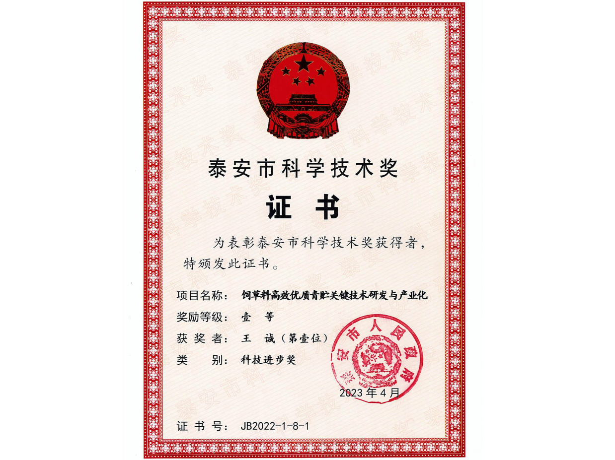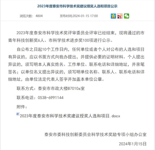 2023年12月榮獲“泰安市青年科技創(chuàng)新獎”