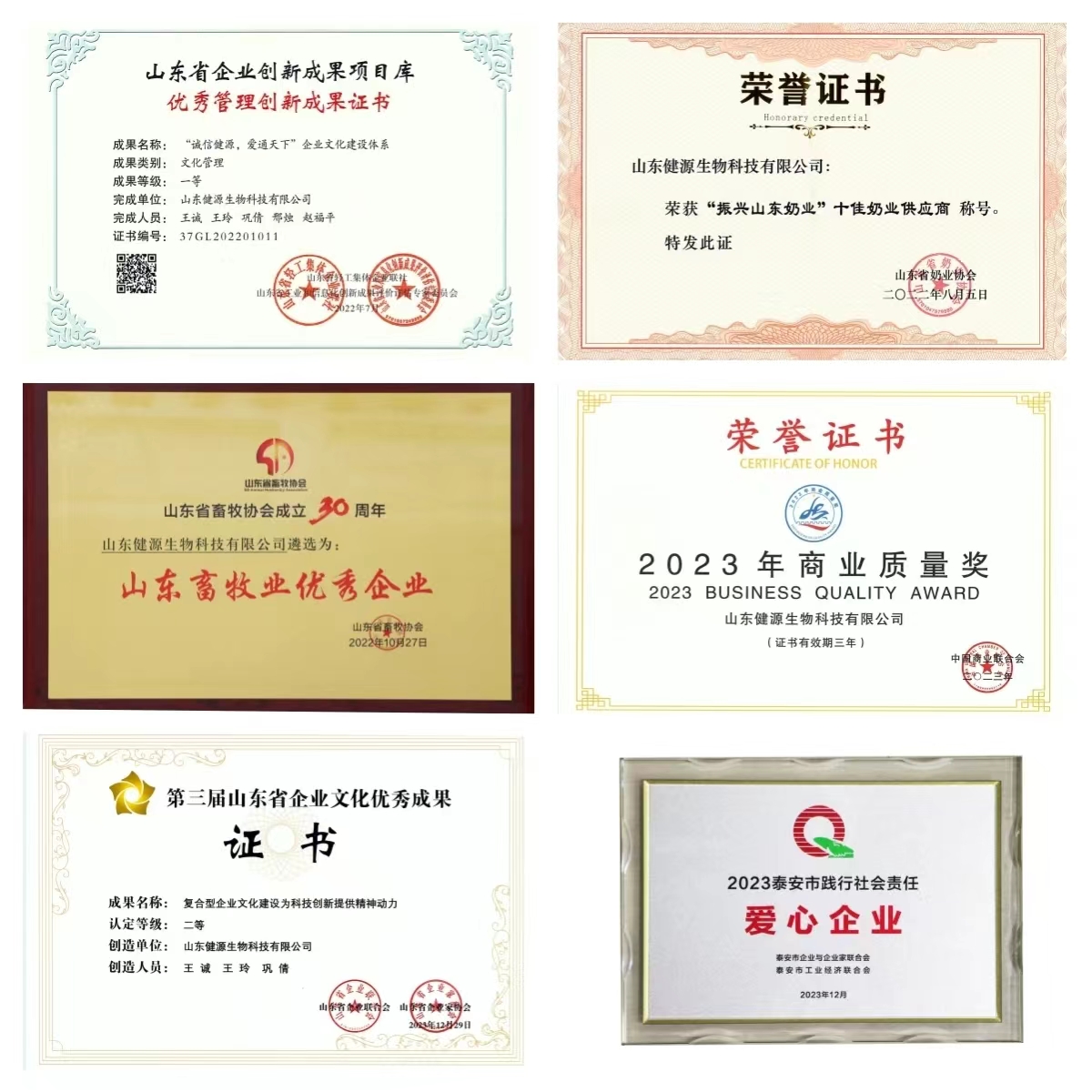 山東健源生物科技有限公司系國家高新技術(shù)企業(yè)、國家科技型中小企業(yè)、山東省瞪羚企業(yè)、山東省專精特新中小企業(yè)、山東省一企一技術(shù)研發(fā)中心、泰安市農(nóng)業(yè)產(chǎn)業(yè)化重點龍頭企業(yè)。公司深耕動物微生態(tài)行業(yè)十年,主攻動物類生物大健康產(chǎn)品,研發(fā)出三十多種高活性生物制劑產(chǎn)品,致力于以高科技生物技術(shù)保障動物健康,現(xiàn)已獲得國家知識產(chǎn)權(quán)局頒發(fā)的各類專利證書100余項,其中包括32項國家發(fā)明專利、3項國際發(fā)明專利,60余項實用新型專利、14項軟件著作權(quán),注冊商標100多個,還有正在申請中的國家發(fā)明專利20余項,累計榮獲市級科技獎項7項,省級科技獎項30余項,部級科技獎項12項。