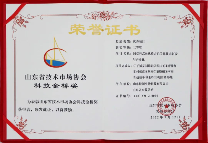 2022-8-11 【喜報(bào)】山東健源生物榮獲山東省科技金橋獎(jiǎng)二等獎(jiǎng)