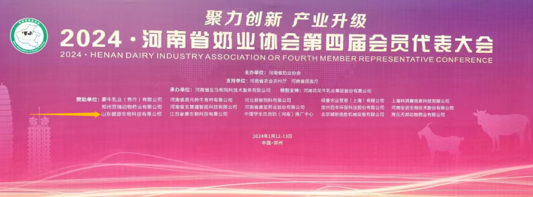 2024年1月12-13日,由河南省奶業(yè)協(xié)會主辦、河南省農業(yè)農村廳、河南省民政廳支持的2024河南奶業(yè)協(xié)會第四屆會員代表大會在鄭州舉行。農業(yè)農村部相關業(yè)務部門領導、河南省農業(yè)農村廳奶業(yè)管理處相關領導、行業(yè)協(xié)會領導、國內知名行業(yè)專家、奶業(yè)相關產業(yè)代表200余人參加此次大會。山東健源生物科技有限公司作為贊助單位參加此次大會。
