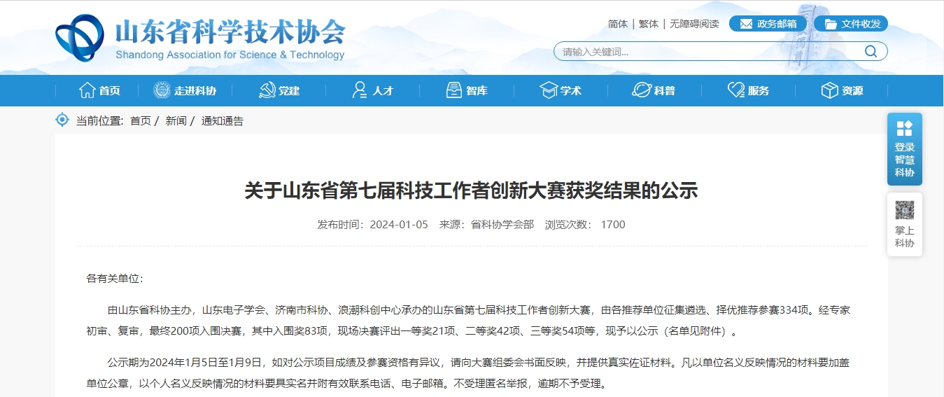 科協(xié)官網(wǎng)公示獲獎(jiǎng)結(jié)果