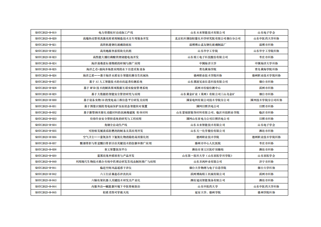 山東省第七屆科技工作者創(chuàng)新大賽獲獎(jiǎng)名單