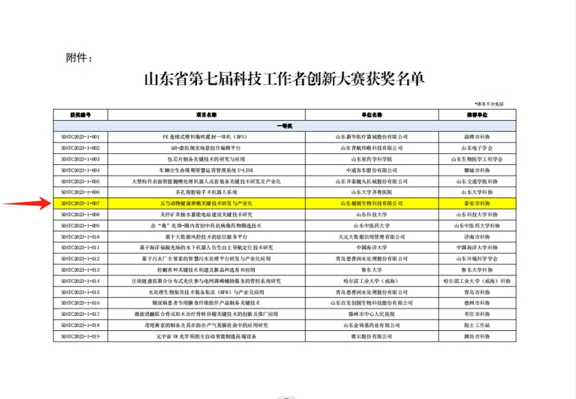 近年來(lái),山東省科協(xié)各級(jí)基層組織貫徹落實(shí)省委、省政府決策部署,圍繞中心、服務(wù)大局,錨定“走在前、開(kāi)新局”目標(biāo)定位,團(tuán)結(jié)帶領(lǐng)廣大科技工作者,勇當(dāng)科技強(qiáng)省建設(shè)排頭兵,在推動(dòng)科技創(chuàng)新平臺(tái)建設(shè)、促進(jìn)科技資源共享、推進(jìn)創(chuàng)新主體聚合等方面做了大量工作。山東省科技工作者創(chuàng)新大賽是我省首個(gè)聚攏科技工作者資源,針對(duì)科技戰(zhàn)線工作人員的創(chuàng)新研究、創(chuàng)業(yè)實(shí)踐所發(fā)起的賽事。在全省范圍內(nèi)推介宣傳創(chuàng)新成果的品牌性活動(dòng),打造了真正鏈接人才、技術(shù)、產(chǎn)業(yè)的優(yōu)質(zhì)平臺(tái);顒(dòng)旨在激發(fā)科技工作者的創(chuàng)新熱情,支持科技工作者創(chuàng)業(yè)實(shí)踐,促進(jìn)科技創(chuàng)新成果與企業(yè)、市場(chǎng)、資本對(duì)接,促進(jìn)技術(shù)與資源結(jié)合,加快技術(shù)成果轉(zhuǎn)化應(yīng)用,促進(jìn)知識(shí)產(chǎn)權(quán)共享,助力科創(chuàng)中國(guó)建設(shè)。大賽是由山東省科學(xué)技術(shù)協(xié)會(huì)獨(dú)家主辦的省級(jí)賽事,已連續(xù)舉辦七屆,開(kāi)科技工作者創(chuàng)新大賽先河,在全省產(chǎn)生了廣泛而積極的影響,是“科創(chuàng)山東”建設(shè)的重要抓手。下一步,健源生物將繼續(xù)貫徹“以高科技生物技術(shù)保障動(dòng)物健康”的企業(yè)宗旨,攻堅(jiān)關(guān)鍵核心技術(shù),打造科技創(chuàng)新平臺(tái),加強(qiáng)創(chuàng)新人才隊(duì)伍建設(shè),著力提升公司創(chuàng)新體系整體效能,奮力譜寫新時(shí)代企業(yè)高質(zhì)量發(fā)展的新篇章。