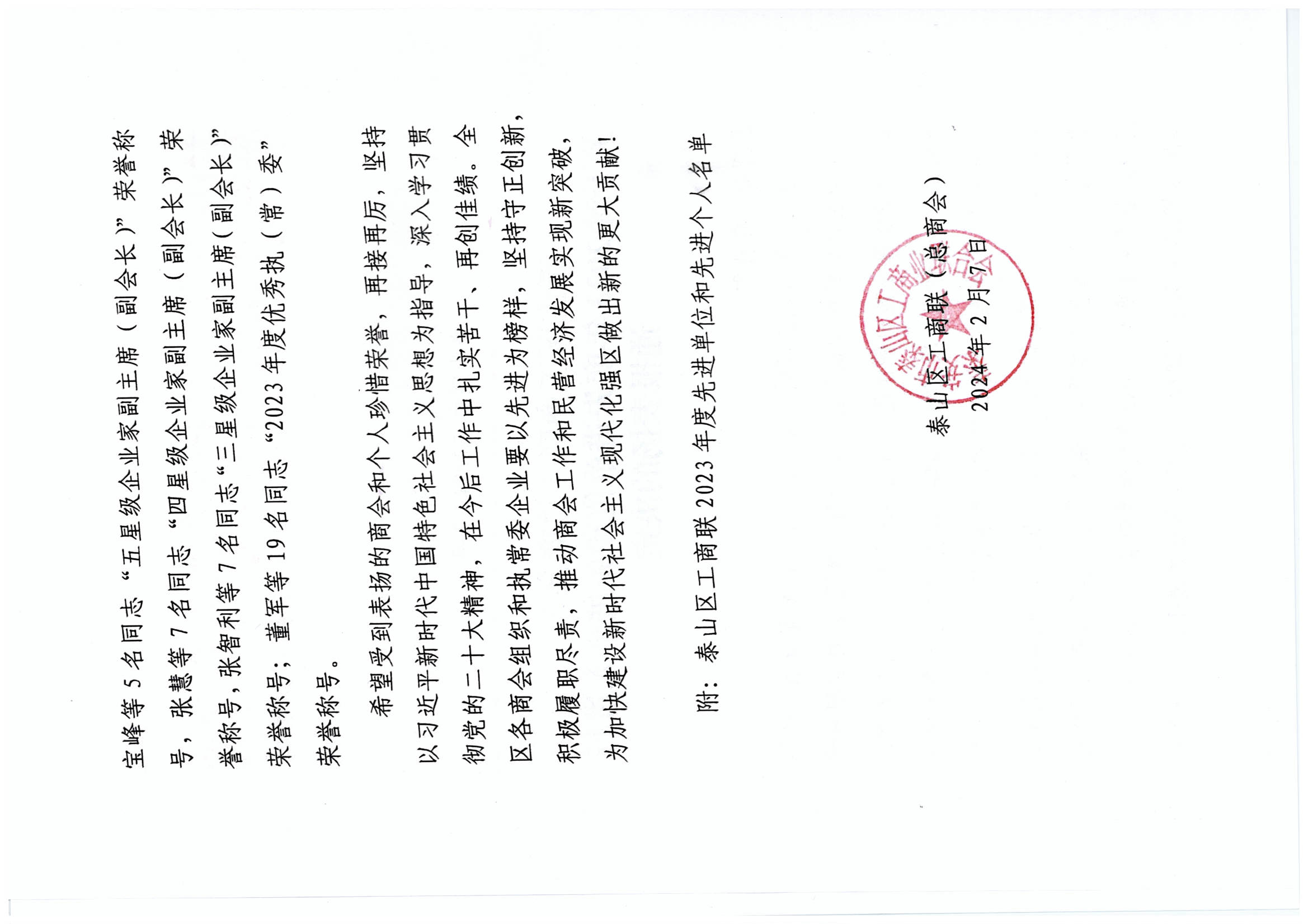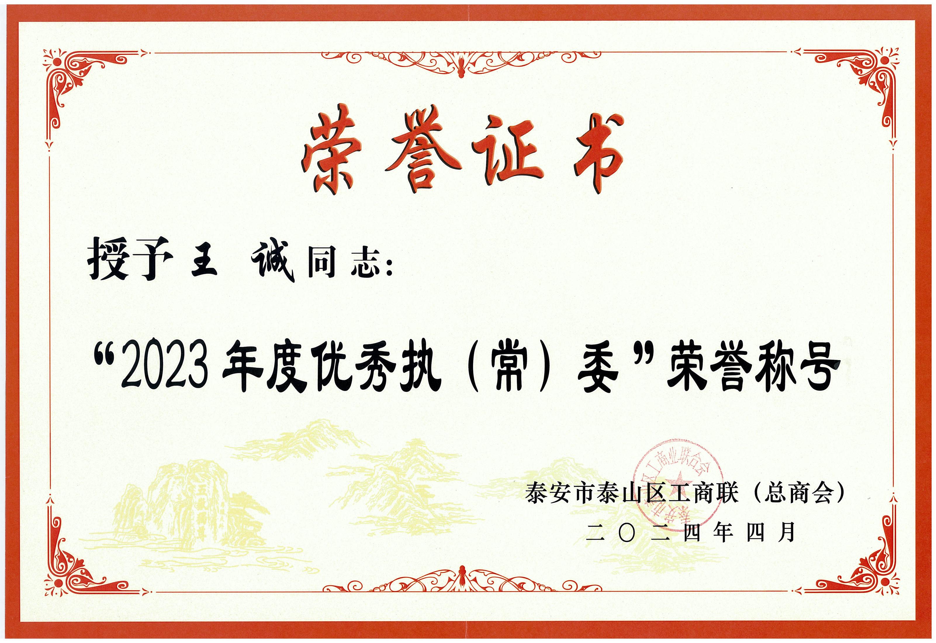 董事長王誠榮獲泰山區(qū)工商聯(lián)“2023年度優(yōu)秀執(zhí)(常)委”榮譽稱號